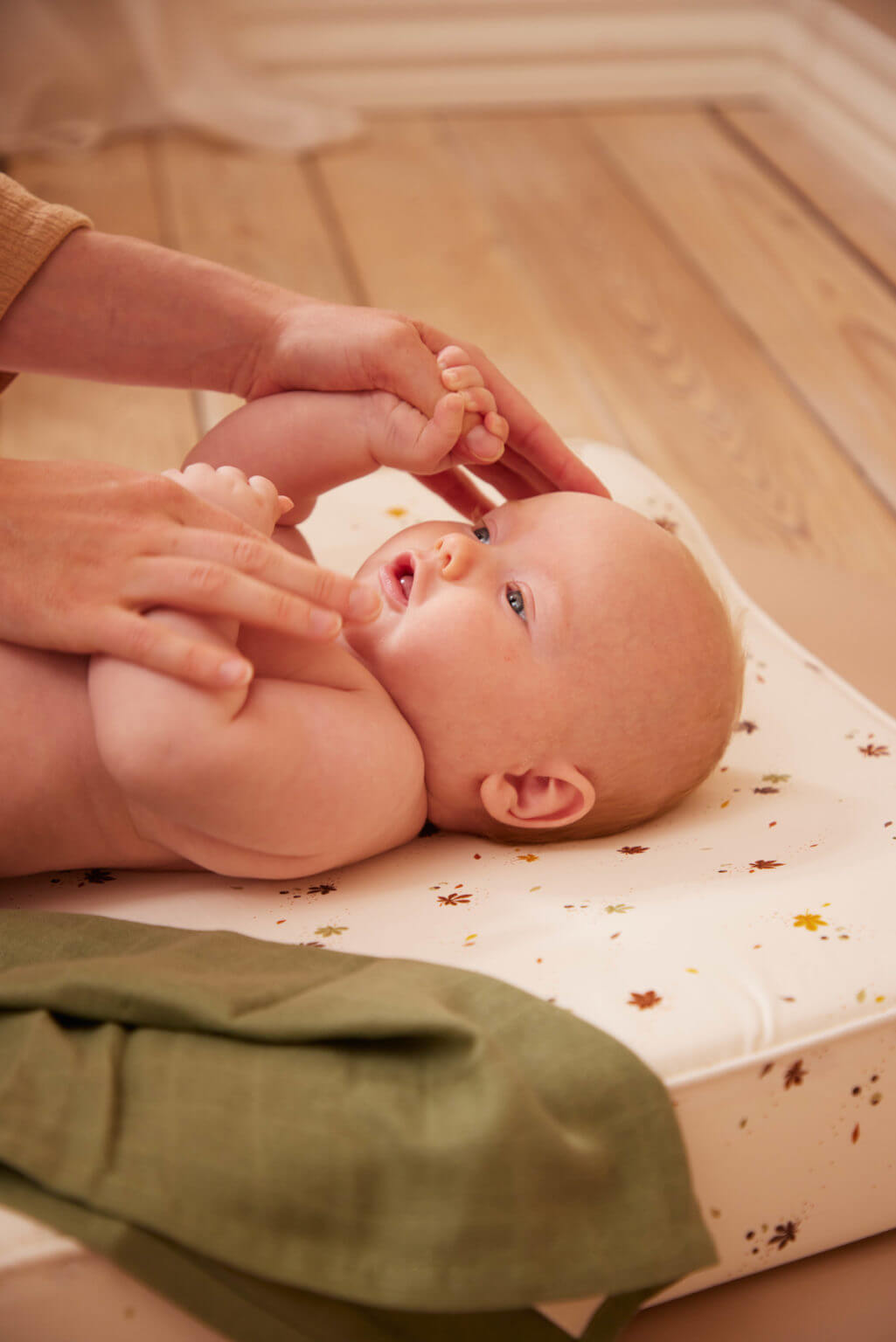 I tilfælde af uheld gør den skjulte lynlås det nemt at tage betrækket af, så du kan vaske det efter behov. Efter vask anbefales det at forme betrækket og sætte det direkte på skumkernen igen. For at mindske risikoen for krympning anbefaler vi at lade betrækket tørre direkte på puslepuden. Denne puslepude er ikke blot en praktisk løsning, men også en måde at skabe nærhed og komfort for både dig og dit barn under skiftemomenterne.